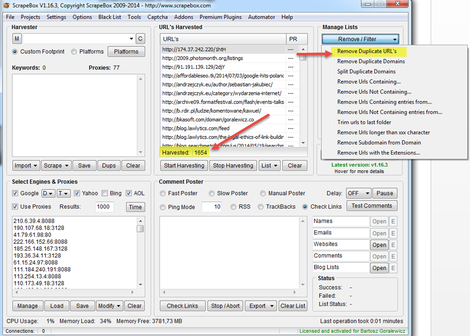 5. Despues pegamos todas las URLs y hacemos clic en Remove/Filter