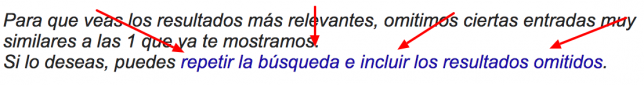 Google es obediente, y por ello no muestra los resultados en el primer intento. Pero si nos fijamos en las últimas líneas, nos propone repetir la búsqueda y esta vez incluir todo lo que antes nos ha ocultado.